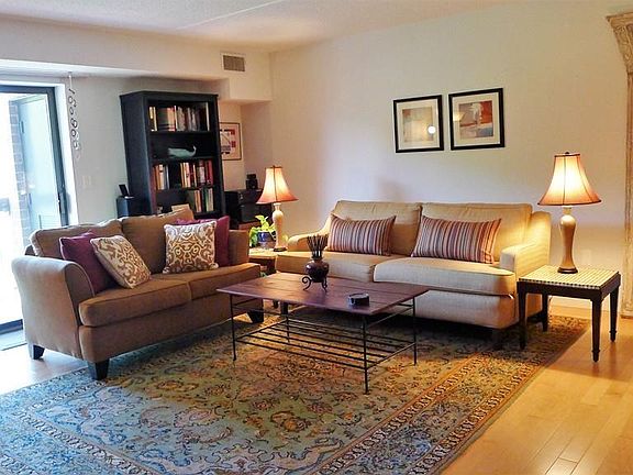 Renovated 2 bedroom/2 bath unit in desirable Monterosa East has it all! Open layout, spacious rooms, hardwood floors, stainless kitchen & enviable closet space, all in a prime location overlooking the Middlesex Fells. Large living room with custom built-ins to accommodate your big screen TV, fits large-scale furniture & features sliders to a private balcony with tree-top views. Dining area comfortably seats 6-8. Carpeted master bedroom fits a king bed & has its own tiled bath, a walk-in closet & a gorgeous 25' custom-designed closet/wall unit. Good-sized second bedroom with sliders to balcony, has double closet with built-in drawers & separate computer desk. In-unit, front-loading washer & dryer, central AC, Nest thermostat, water filtration system, over-sized parking space, & extra first floor storage unit; plus outdoor swimming pool, & club-room. Walk to Wrights Pond & Fells Reservation. Easy, one-floor living in very well maintained, elevator bldg. No smokers; pets maybe. Avail now.
