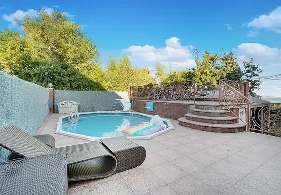 Enjoy water views and relaxed seaside living in this gorgeous four-bedroom, three-and-a-half-bathroom home on a very desirable Manhattan Beach block, just two doors from the ocean. Gleaming hardwood floors, abundant windows and tall ceilings dotted with recessed lighting invite you inside this sun-filled 3000-square-foot home. The spacious living room opens to a large dining area, providing a perfect flow for entertaining. In the windowed eat-in kitchen, you'll enjoy ample cabinet space, full-size appliances and an oversized breakfast room that opens to the stunning yard. Lounge on the sun deck, take a dip in the in-ground pool or enjoy dining al fresco with ocean views as your breathtaking backdrop. A convenient powder room and coat closet complete the main level. On the home's second floor, you'll find an expansive owner's suite with a step-up dressing area surrounded by custom closet space. The spacious, skylit en suite bathroom features a huge walk-in rain shower with a bench, a bidet and a sleek glass vanity and makeup counter. Two sunny secondary bedrooms share another well-appointed full bathroom on this floor. On the fully finished basement level, there's another family room, bedroom, bathroom, a laundry room and a large home office. With gorgeous interiors, a dedicated work-from-home area and access to wonderful private and public outdoor space, this home is perfectly suited to life during and after COVID-19. This home is ideally located at the end of a quiet cul-de-sac in Brooklyn's sought-after Manhattan Beach. Just a block away, glorious Manhattan Beach Park offers a beach and boardwalk, sports courts and fields, and an outdoor amphitheater hosting summer concerts. Kingsborough Community College, Brighton Beach and Coney Island attractions are all within easy reach. Transportation is a breeze thanks to nearby Shore Parkway, excellent local bus service, and B and Q trains at the Sheepshead Bay station.