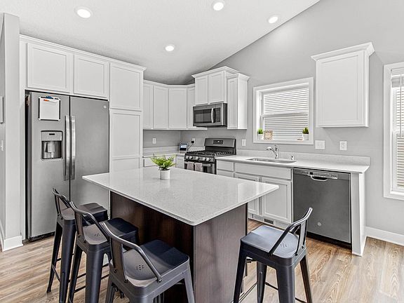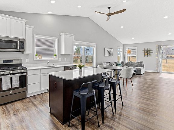 Better than new construction! Welcome to this charming home in Delano's Highland Ridge neighborhood. Enjoy entertaining with this large, open floorplan with plenty of room for friends and family. Enjoy the ample natural light that floods the interior, highlighting the sleek finishes throughout. The kitchen boasts modern slate appliances, center island, pantry, and quartz countertops. The main level features soaring vaulted ceilings and seamlessly transitions to a spacious backyard through patio doors. Upstairs, find three bedrooms and two baths, including a master retreat with a walk-in closet, walk-in shower, and quartz countertops. The lower level provides versatile entertainment spaces, an additional full bath, and a fourth bedroom. Other features include a three-car attached and insulated garage, in-ground sprinkler system, and smart home capabilities. Enjoy nature from your home with a wetland across the street. This beautiful home is a must see!