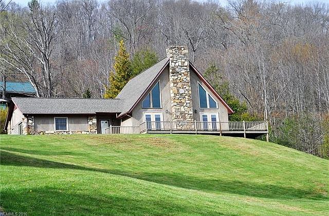 Remarkable Value only 30 minutes to Asheville. This cute A-frame offers panoramic long range mtn views & has easy access to town, medical care, exercise & schools w/ a private out of town feel. Bring your horse or adopt theirs & the donkey too!. Enjoy mountain living at its best by a cozy fire or out on the large deck. This home offers 3Br's 2/Ba's, a wonderful kitchen great room combination & private master suite upstairs with it's own deck. Plenty of storage in the basement too! Must See!