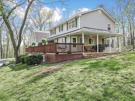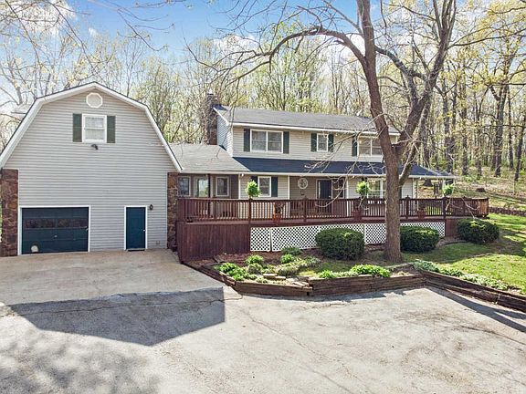 Hilltop Haven! True country living awaits you in this 10+ ACRE PRIVATE PARADISE. Located at the end of its own blacktop lane, this immaculate, Amish-built home is completely surrounded by pure Ozarks nature and makes the most of the gorgeous, secluded views with its wrap-around deck and covered side-patio. A spacious kitchen with convenient desk area and extra prep sink is perfect for the multitasking family. The EXTRA large master closet (10x13.8) will surprise you! Plus it has a handy laundry chute to boot. The living room has a floor to ceiling stone fireplace with wood burning insert and blower to help keep utility bills down. But you'll first notice the hand-carved crown & box moldings that highlight the ceiling treatments. 50 yards away outside is a level, cleared area with a cozy fire pit (probably level enough for an additional build site for that shop you've always wanted). Also outside is a hook-up for a generator and RV parking. Another bonus is the impressive separate 1 bedroom suite/office with its private entrance, foyer and outdoor balcony. See our list of additional features. There are too many to fit here! If you pass this listing up after watching the video then you're just plain ol' city-lovin-folk! Stop what you're doing and schedule your showing TODAY!