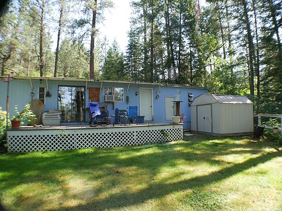 Borders St Maries Golf Course! Down in the trees with stream running thru. Personal property double wide is older, but appears to be in pretty good shape. Fenced yard in front and very nice detached garage. Easy access close to St Maries. Property acreage likely not correct, subject to new survey that will define.