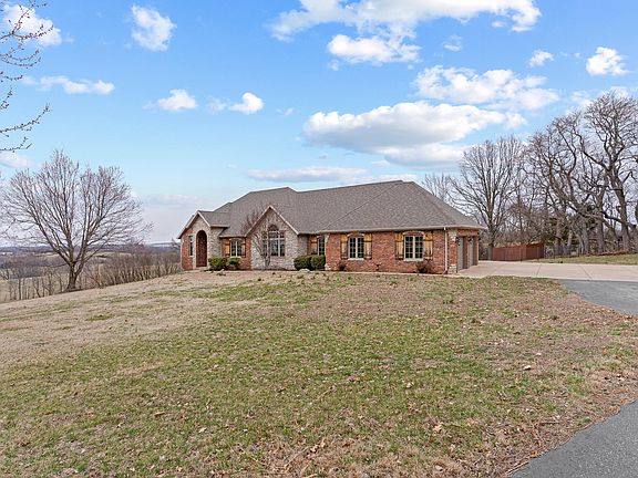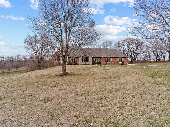 Wow what an opportunity to own a Gorgeous home. This brick and stone home features 5 bedrooms, 3 baths, granite countertops and tile backsplash, new appliances, eat in Kitchen and Formal Dining room, stone, wood, tile and carpet flooring, split floor plan, office with built in cabinets, formal living room with gas fireplace, upstairs, basement features a large Family Room with gas fireplace, full kitchen, 3 bedrooms, storm shelter, bonus room and a fully insulated John Deere Room. Tankless water heater, Attic has been upgraded and new insulation and new water softener. Enjoy this home outside, as well, while sitting on your deck with fireplace and pergola overlooking 3 beautiful acres. This home as so much to offer it is a must see and should be added to your list. Call for an appointment today.