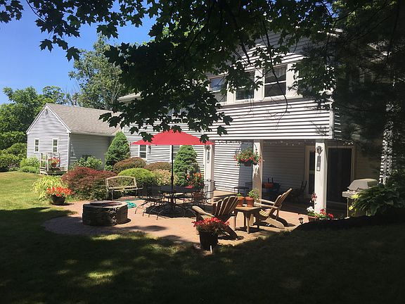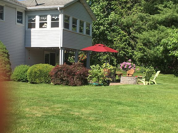 A "Welcome Home!" This beauty has been well-loved and beautifully maintained. Your first impression will be "wow" when you see a mature and professional landscaped property. The main living offers an open floor plan, gleaming hardwood floors, and a remodeled kitchen with silestone and stainless appliances. Right off the dining room is a relaxing 3 season sunroom. Down a few stairs to the lower level, you'll find a comfy family room with wood stove, office (or 4th bedroom), and half bath. The sliders right off the family room take you right out to the patio. And for you garage buffs, you will love the oversized 24x31 garage with a convenient mudroom to the house. The backyard is private and a deep lot with space galore for backyard play. The large patio with firepit, garden area, and shed with cement slab top off this great lot. The location is convenient, abuts a brook and neighbors high-end homes. Seeing is believing!