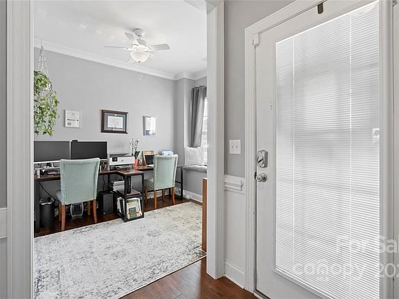 Impeccably maintained townhome in Settlers Landing neighborhood within walking distance of shopping center! This end unit features extra windows ensuring tons of natural light and backs up to a large common area field with grills, gazebos and a community garden. The main level features dark hardwood floors and 10 foot ceilings with a nice open flow. The kitchen just past the office space traits gorgeous granite counter tops, stainless steel appliances as well as an over-sized island that is perfect for entertaining and extra dining space. Laundry is upstairs for buyers convenience and the bedrooms feature beautiful arched ceilings that keep the open concept throughout the home. The master features a tubless renovated walk-in shower space allowing for easy access and open modern concept. The chosen fixtures throughout are simple, neutral and tasteful as are the colors, making this home move in ready! Schedule your showing today, it wont last long!
