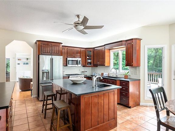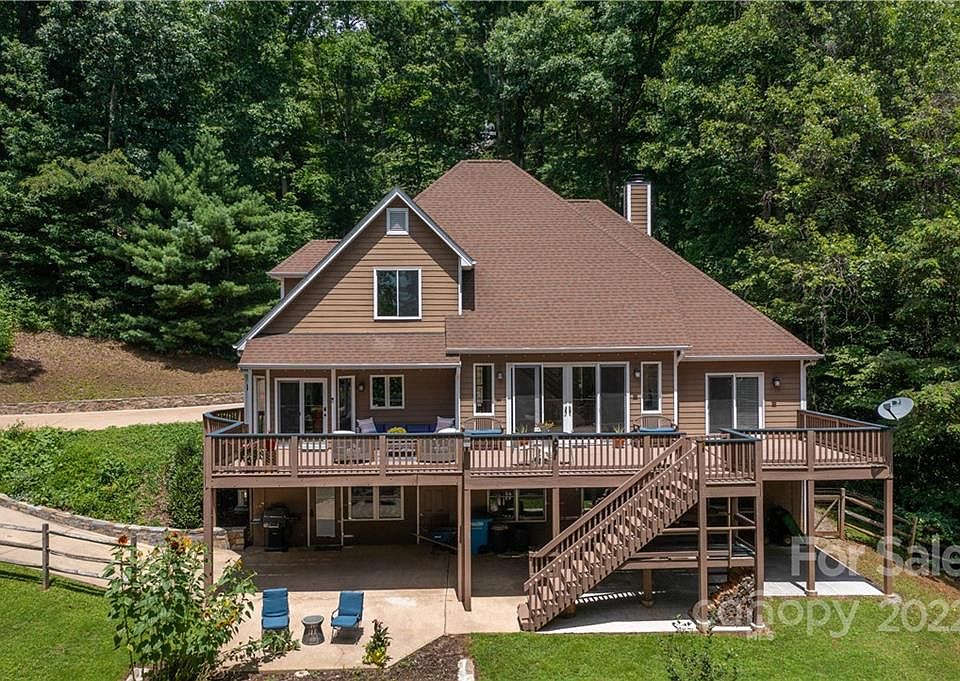 This private mountain haven, tucked away at the top of Riceville Forest, welcomes anyone looking for a peaceful retreat. As soon as you hit the driveway, enjoy mountain views of autumn foliage, spring blossoms, and summer greenery. Just 10 minutes to amenities and 20 minutes to downtown Asheville. The natural beauty continues when you step inside, with picture windows framing the idyllic setting. Relax in the airy great room with vaulted ceilings, woodstove, and access to an expansive deck that extends the entire length of the back of the home. Primary on main has an ensuite bathroom, and two upstairs bedrooms plus a flex space provide privacy and room to spread out. Lower level with a separate entrance has endless possibilities with a full bathroom, covered patio, and tons of storage. Nature lovers can enjoy hiking and biking from their front door, accessing the MTS Trail or taking a drive along the Blue Ridge Parkway. 2-car garage provides additional space for all kinds of toys.