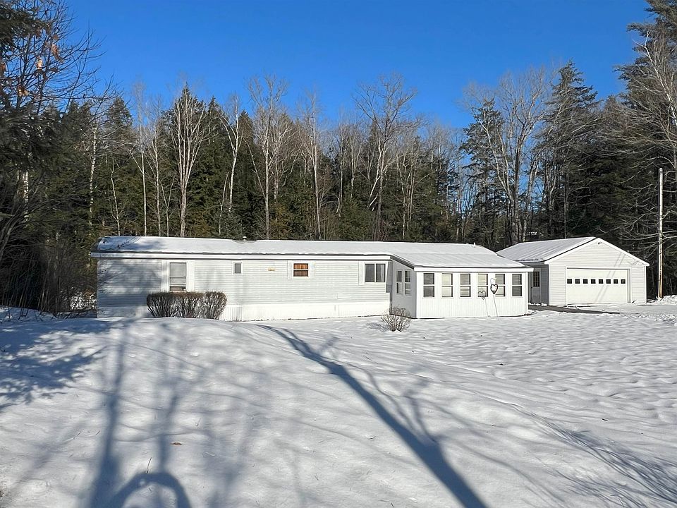 Affordable property looking for a new owner. Certainly, a plus if handy. Situated just off the road on over an acre. Enter the home through the sun porch. Considered the favorite room in the house. Eat-in kitchen includes plenty of cabinet space and counter tops with a breakfast bar. Open to a bright and spacious living room. The floor plan offers a private primary suite with a full bath. The second bedroom is at the other end of the home with an adjacent full bath. Close to all amenities.