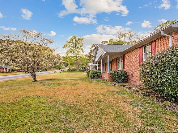 This brick ranch home is a must see if you are looking on the north side of town! Located just off of Ramsey St in the established Kinwood Neighborhood, this home is situated on a corner lot with a side entry two car garage. This 3 bedroom, 2 bathroom home offers an eat-in kitchen, formal living, formal dining, large family room, sunroom, spacious laundry, and additional space for a craft room or small office. The bathrooms have been updated with tile showers and granite vanities. The exterior offers a lovely covered front porch with porch swing. Perfect for enjoying views of the established landscaping such as Dogwood trees in the front yard. The back yard in fenced in with a concrete patio perfect for entertaining. It is located in close proximity to Methodist University and I-295.