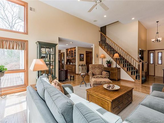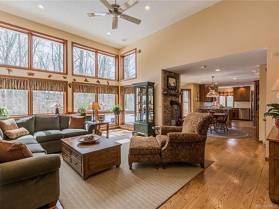 From the minute you drive onto this property you'll know how well cared for it is. Custom built 3 bedroom 2.5 BA contemporary cape with a 2 car attached garage has a new sweeping circular driveway right up to the home and additional detached post and beam 2 car garage. This home was positioned on the 9 plus acre lot to maximize the southern exposure from the 2 story family room and kitchen. You won't be disappointed by the quality finishing throughout this very comfortable home. Main level master bedroom with spacious walk in custom organized closet and separate tub, shower and double sinks is tucked off the side. Formal dining room is currently used as a sitting room, but it's location just off the main entry and convenience to the kitchen makes it a versatile space. Large eat in kitchen with custom cabinetry, Corian counter tops, corner sink & window, breakfast bar and oversize pantry closet make this the cook's delight. Second floor bedrooms with full bath and finished lower level with propane stove complete this home and leave plenty of space no matter the size of your family, Beautiful gardens, mature plantings and plenty of privacy. Central AC. 11 inch foundation and insulated with blue board. Home is monitored by RUGH for security and fire alarm. Two 275 gallon oil tanks.This property abuts the state forest with plenty of hiking trails. And if 9 acres isn't enough, we have an additional 9 + acres available next door MLS 170066224.