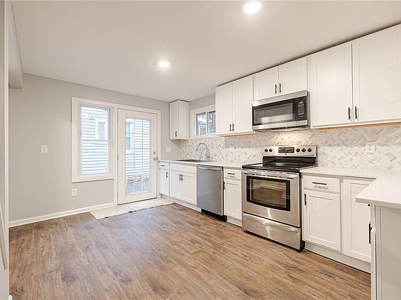 You will be impressed! Two, potentially 3 or 4 bedroom, 2 bath home has a completely remodeled light & bright interior. You can hear the lake surf from this comfortable house located on a dead end street in this quaint Seabreeze neighborhood. Spacious & stunning kitchen with white cabinetry, herringbone designed backsplash, solid surface countertops & snack bar. Primary bedroom leading to spacious full bath with large walk in ceramic tiled shower. Front entrance leads to a spacious foyer/mud room, first floor laundry & den/office or 3rd bedroom. Laminate & tile flooring on 1st & 2nd floor, carpeted 3rd floor bedroom. Interior freshly painted. Stove, washer, dryer, microwave & dishwasher remain. Three floors total 1367 finished square footage. New blacktop driveway & garage floor. Delayed negotiations until December 6th at 6pm.