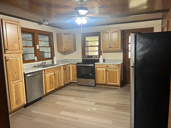 Alderson-2-3 bedroom, 2 bath home on nice level lot in Alderson Corp. Hardwood floors, new laminate floors and concrete, newly painted inside. New hickory kitchen cabinets and laminate counter tops. Large enclosed 2 car garage converted into large living room can be master bedroom or family room. Electric baseboard heat, arch shingle roof. 3-4 new replacement windows. Covered front porch, concrete driveway, 2 new sliding doors. Stainless steel appliances convey. Agent owned.