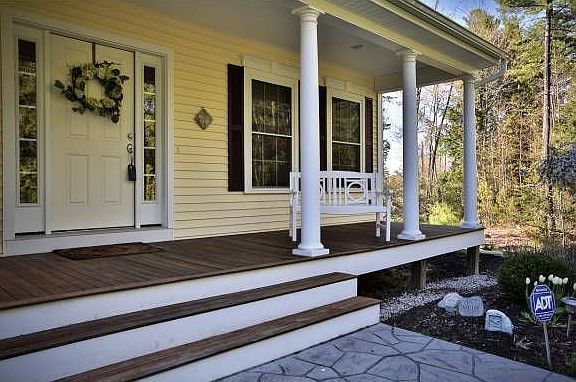 BEDFORD BORDER location - GREAT SCHOOLS. Styled for todays living - low maintenance, connected, spacious, open, bright, and functional. As you enter the foyer you are drawn to the heart of the home - the expansive eat-in kitchen( breakfast bar, granite, hardwood floors and stainless applcs). The kitchen is open to a fire-placed 18x16 Living/Family Room; 9ft ceilings 1st Flr. The 2nd floor has 4 bedrooms plus a 2 ROOM bonus OFFICE area; the Master suite a MASTER PIECE- 18 x 16 x9.8 Height bedroom with trey ceiling, large walk-in closet, spa bath- separate shower and dual vanities. All baths w/Granite. Large 20 x 12 shed, 16 x 12 deck, 22 x 6 porch, central air and an AUTOMATIC generator. Remove more trees if you want an even bigger yard (2.2acres); Private land with habitat area; add a pool. 15 minute commute to major hwys;GREAT SCHOOLS and town to live in. Move in READY. MAKE YOUR MOVE. See VIDEO.