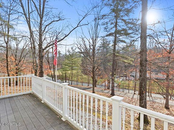 Nature lovers will delight over this substantial ranch home with Trex deck off the LR addition to witness the frequently passing wildlife on 2.37-acre lot with winding drive to its treed perch on top. A cathedral ceiling family room has T&G wood paneled walls, flagstone wall, &