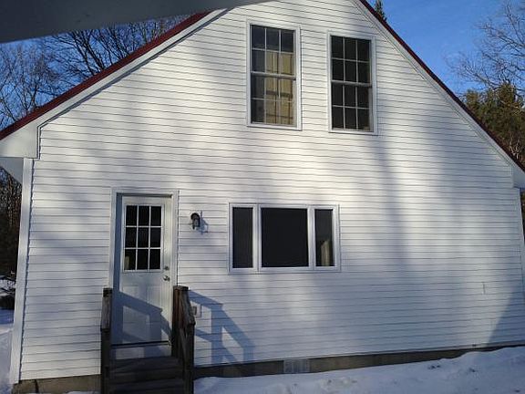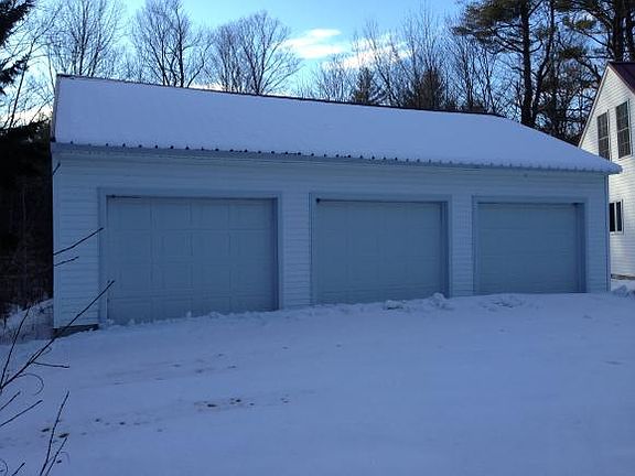 Originally built as a small school house, this building has been entirely renovated into a 2 bedroom home with open space kitchen, LR & dining area on first floor as well as a full bath. 2 bedrooms are on the 2nd floor. Building condition is like new. Property has not been occupied since the renovation. House is an attractive and comfortable starter home. The 3 car garage next to the house is in excellent condition (virtually unused). A second garage is located at the rear of the 2 acre lot for added storage space. Apple trees and ancient rock walls surround the house. Due to the pie shape of the lot there is 880 feet of road frontage that surrounds the property.