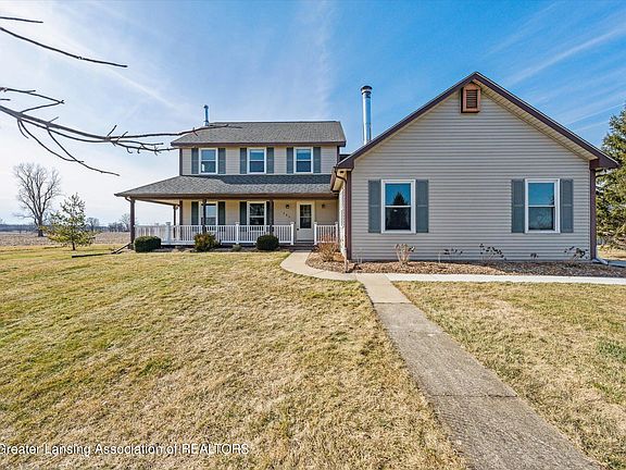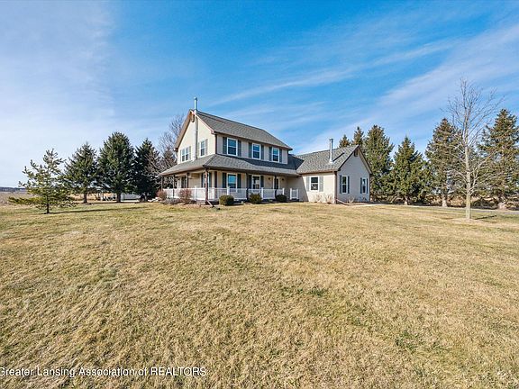 Welcome to 289 N. Searls Rd. located in Webberville, MI! This property sits a good distance off Searls Rd. on a beautiful 10 acre lot that features a mixture of trees, open land, along with a pond. The home features just over 1,900 SF of living space with 3 bedrooms and 2.5 bathrooms. When entering through the front door you walk into the entry area that leads you to a good size living room with a wood burning fireplace. Off the living room is the dining room with slider doors to the wrap around deck. Off the dining room is a very large kitchen with tons of countertop space along with an island. The first floor also features a half bathroom along with 1st floor laundry. On the second floor you will find the guest full bathroom, 2 good size bedrooms, along with the master bedroom. The master bedroom features a remodeled master bathroom shower with a double sink vanity. Other features of this home are a full basement ready to be finished, a 3 car attached garage, and a detached pole barn with concrete floors and a wood burner. Call today for your private showing!