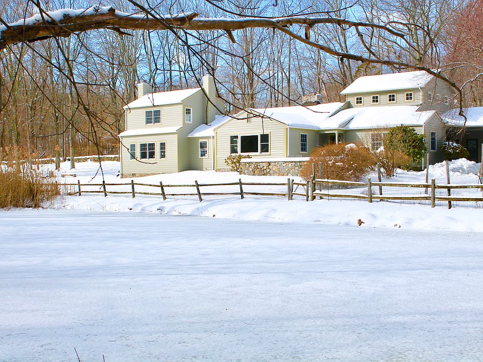Special opportunity to own a farmette in an estate area close to the BRLA. 4.7 gorgeous acres of rolling meadows, tall grasses, mature trees, stone walls, and a spring-fed pond. The sun drenched 2-story high kitchen is surrounded by the formal and informal rooms -- all with freshly painted walls and refurbished hardwood floors. A very large living room provides comfort and charm with a fireplace, window seat and built ins. All family bedrooms are located on the first-level and feature their own distinct views of the property. The master bedroom suite has a fireplace and staircase leading to a lovely sitting room, overlooking the meadow and pond. Less than 10 minutes to shopping, restaurants, and train, this farmhouse feels far away in the country.