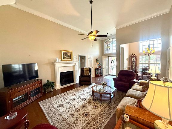 Golf Community Location! One owner 1.5 story Brick Home located at the end of a Cul-de-sac, & situated across the street from Blackberry Trail Golf Course. Enter the foyer to the OPEN floor plan featuring 14' ceilings in Foyer, Living Room, & Dining Room. Lovely HW Flooring & nice Crown Moldings. Fireplace with Gas Logs. Living Room Opens to a lovely sunroom (heated) and windows that covert it to a screened porch. Patio on each side of Sunroom, W/ a view of adjacent Wilson Creek Pond. Back inside features Kitchen W/ Breakfast Bar & Breakfast Nook. Granite countertops. Stainless Appliances. This Split Bedroom Plan features a large Primary Bedroom W/luxury bath, double vanity, & very large walk in closet. The other 2 bedrooms on main level feature Jack n Jill Bath. The 4th Bedroom (carpet) & full Bath are upstairs. (would be great REC RM) 2 HVAC units. Speciality Ceilings, Plantation Shutters. Hardwoods thru/out main level W/Ceramic tile in Kit and 3 Baths. Security System. SHOWS GREAT!