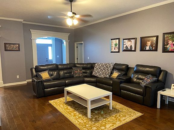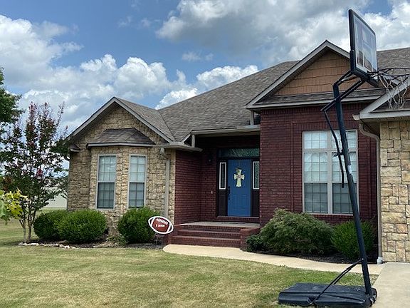 GORGEOUS 3-4BR, 2BA ON 2 ACRES!! Home was built in 2011 and is 2188 sq feet plus 591 sq ft 2 car garage. Home has 3 bedrooms plus an office being used as a 4th bedroom. Master suite with tray ceiling, private bath with double vanity, jacuzzi tub, walk in shower and walk in closet. Beautiful kitchen with large pantry, breakfast nook, bar, island and coffee bar. All stainless stove, refrigerator, dishwasher, microwave and garbage disposal included. Very cool IKEA lighting! Separate formal dining room with 12 foot ceiling. Home features Crown molding, hardwood floors, water softener, natural gas fireplace and architectural archways. Sitting on approximately 2 acres with a privacy fenced yard. Includes nice combo kids playhouse - swing set! 192 sq ft deck and pergola area with spot for fire pit. Exterior has accents of brick, cedar shake and stone! Just 5 miles from city limits on a paved road. Don't miss this immaculate home!