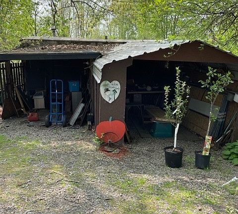 Enjoy living in this peaceful home. Beautiful hardwood floors. Eat in kitchen with room to prepare your meals. Walk in pantry and first floor laundry area. Large family room with coal/wood burner, could be home office or bedroom. Nice size bedrooms. Off the main home is a little bungalow with a repairs you could have a mother in law suite or an office. Great yard with fruit trees, burn pit and shed.