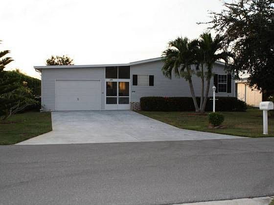 Just move right into this well kept beautiful home! Immaculate 3 bedroom 2 bath with 1 car garage! Don't miss this opportunity to be the new owner of this home. Beautiful view of the lake. Own your own land. Wood floors, tastefully decorated. Bay window. Walk-in closet in master bedroom. Large master bath. Kitchen with island. Split plan for privacy for you and your guests. Screened in patio area. The garage is 12x20 air conditioned, insulated with work bench and a loft for all of your storage needs! This is a 55+ community. There is a boat ramp with direct GULF ACCESS!!! This community is close to everything that you could ever want and need. Low HOA dues. This is a short sale.