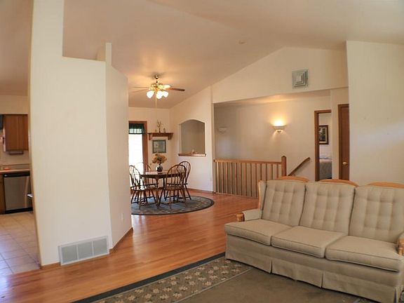 No Showings until Wednesday 9/18. Spacious and open home with great curb appeal is well maintained and move in ready. Tile entry welcomes you into the open floor plan and split bedroom design. You will enjoy the open feeling of this lovely home with vaulted ceilings, bay window, fireplace and hardwood floors in the living room and dining room. The kitchen is will appointed with plenty of counter and cabinet space, pantry, built in desk and breakfast bar. There is new carpet in all the upper level bedrooms and the master suite has a walk-in closet and 4 piece bath with a walk-in shower. The main level laundry serves as a mud room leading to the garage! The basement has a huge family room, another bedroom and full bath and plenty of storage. The fenced back yard offers privacy, covered patio, mature landscaping and a shed. Hurry, this home won't last long!