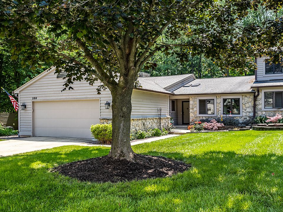 You don't have to give up a yard and greenspace in a condo - you just give up the work. The sunroom is your (Pella casement) window on wildlife, birds and the passel of horses in the pasture. Tranquility! No house behind! Two pairs of skylights brighten your path to the Great Room with cathedral ceiling and fireplace. The open spaces are made for entertaining or family as rooms flow one to the other. No one in the kitchen is left behind in conversation --and the super-sized island is a gathering spot. Enjoy the luxury of granite, the walk-in pantry, stainless appliances, new Bosch dishwasher, U-line under-counter beverage frig. This is an easy-care condo with durable, beautiful bamboo floors t/o. The primary bedroom has separate his & hers walk-in closets, high-end raised cabinetry with double sinks, granite counter, tiled shower, and soaking tub--and heated floor! You deserve what's here. Come and enjoy.