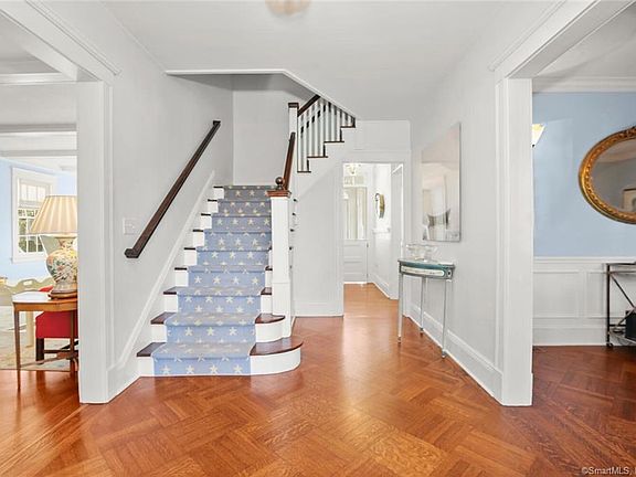 Shippan Waterfront Community! Classic Colonial home evokes character, charm and a timeless aesthetic! This fully renovated home in a superb neighborhood location offers great flow and utility with modern upgrades. Sparkling kitchen with custom built eat in area for 6, Wolf Double Oven Gas range with Range Hood, Sub Zero fridge, Bosch Dishwasher, Wine Chiller, Rich Marble Countertops, Custom Cabinetry with great storage. Sunny dining room with adjoining Den with fireplace. Front to back living room with fireplace leads to family room/office combination with doors to deck and backyard. Mud Room also. Second Level presents spacious master suite with walk in closet, alcove area, luxury bath with soaking tub, stall shower. Two additional generous sized bedrooms (one with large walk in closet), plus an amply sized full bath complete the 2nd floor. Third level has 2 additional bedrooms and a full bath. FINISHED LOWER has playroom and bonus area . Beautiful manicured grounds feature a fenced in backyard and deck with room for a pool. New windows on 1st and 2nd floors, New hardwood floors in several rooms. Gas Heat, Central A/C. Detached 2 car garage. 7 MINUTES TO METRO NORTH, WALK TO STAMFORD YACHT CLUB AND NEIGHBORHOOD BEACHES!