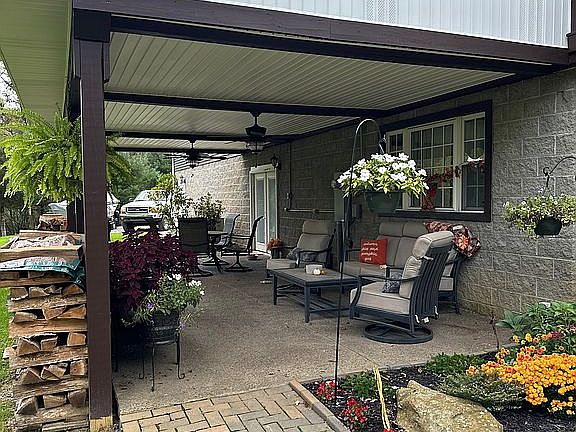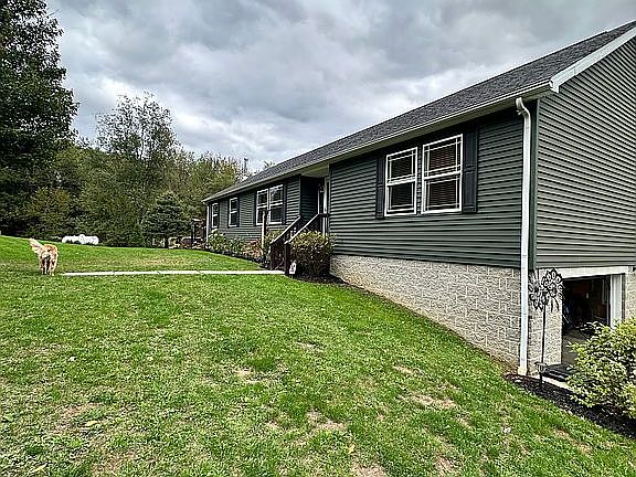 Beautiful, private property backs off road. Home has open concept main living area with All New LVP flooring and New Carpeting in bedrooms. Newly built patio roof in 2024. Walk-in Pantry. House has a wood stove as an optional heat source if you prefer that over propane. Basement has 4th bedroom with closet and full bathroom. 2-car garage with optional heat. Laundry room on main level.