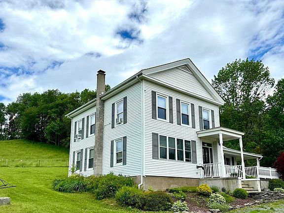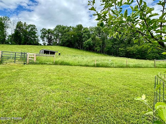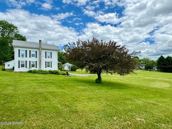 Don't Wait on This One! CLASSIC 19TH CENTURY PENNSYLVANIA FARMHOUSE ON 4.2 COUNTRY ACRES! Discover your dream home on the outskirts of Honesdale! This property offers a perfect blend of rural charm and convenient proximity to the amenities of town. Set on 4+ bucolic acres, the property provides plenty of room to gather with family and friends, including a sprawling lawn and original gazebo in the front, and your own chicken coop, garden area, yard, and fenced pasture in the back, bordered by stone walls. Enjoy breathtaking countryside views from the covered wrap-around rocking chair porch of this charming farmhouse which offers classic details but has been thoughtfully updated to include a newer roof (2018), modern bathrooms, remodeled living room with pellet stove, and a conversion to efficient natural gas heat in 2021. Attached woodshed is convenient for multiple uses and the 24 x 24 pole barn has been started, providing endless potential for your needs!