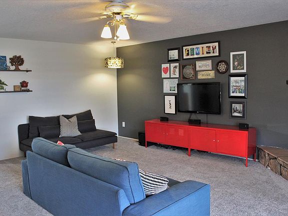 This home has a great floor plan with open space and great flow, along with beautiful finishes and touches throughout! The entryway welcomes you into a large living room with a lovely rock fireplace that will keep you cozy in the winter! The spacious kitchen is open to the large dining area, and looks out into the expansive back yard and toward the Jemez Mountains. A large laundry room off the dining room offers tons of additional storage space is a great place for hobbies or an exercise room. Both full bathrooms have been totally updated with stylish finishes. Central A/C will keep you comfortable in the summer. The large lot is equipped with a sprinkler system for ease of watering in the summer months. The home has new flooring and fresh paint inside and out. This lovely home is ready for you to move right in, and make it your own!