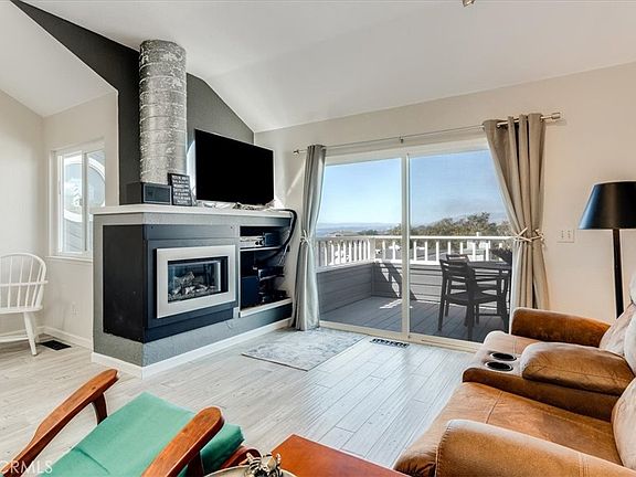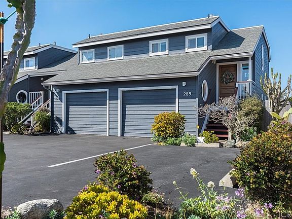 New Improved Price! Fresh coastal paint and stunning ocean views at this westside corner condo in historic San Simeon. The open-concept main floor flows seamlessly from the living area onto a deck where you can spot whales, the lighthouse, beautiful sunsets, and San Simeon Cove. The living room is filled with natural light and boasts a new fireplace, wood floors, and skylights. Adjacent is the dining area near a bar counter and window. The bright white kitchen includes newer appliances, which are part of the sale, plus a built-in desk and convenient half bath. Downstairs, you'll find two bedrooms and two full bathrooms, complete with storage cabinets. The master suite opens to a patio leading to the landscaped corner backyard. The unit also includes a single-car garage with a washer and dryer. The exterior was recently painted, and the well-maintained units benefit from a great HOA. A short walk takes you to the ocean via public land and beach access. Nearby, visit the elephant seal rookery, and take in views of the mountains, Hearst Castle, grazing cattle, and even zebra. Located close to the charming village of Cambria with its artistic community and delicious restaurants, and just a short drive to Paso Robles wineries and the San Luis Obispo area. San Simeon, across from Hearst Castle, is a perfect place to call home.