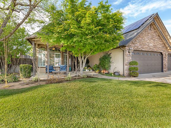 This is it! Beautiful home in Clovis Unified that will check all the boxes. As you enter the home the open floorpan with flexible playroom space or formal dining room is perfect for entertaining. Built in custom bar with wine fridge. Updated kitchen with stainless steel appliances and granite countertops. Master bedroom has oversized walk in closet and large bathroom and double counters plus jetted tub. There are three additional rooms, two with walk-in closets and third is an office with custom built in desk and double doors. The backyard is an entertainer's dream! Swimming pool with sheer dissent water feature and pebble tech finish. Custom patio cover allows year round outdoor dining. Oversized completely covered RV parking and OWNED solar! Schedule your showing soon!