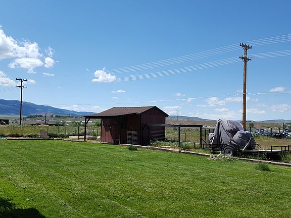 2 bedroom, 1 bath, 1512 sqft house on fully fenced .43 acre in town with an out of town feel. Nice concrete patio shaded with mature trees. Large backyard with pine trees, aspens, lilacs, and beautiful mountain views. Big fenced garden with raised beds. 256 sqft shop on concrete slab with work benches and shelving. 160 sqft shed on concrete slab. Willing to work with buyer's agent. Must see to appreciate. Call for more information or to schedule a showing, 307-250-9958.