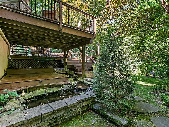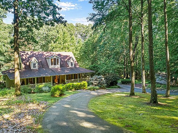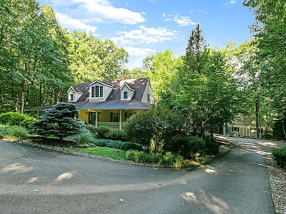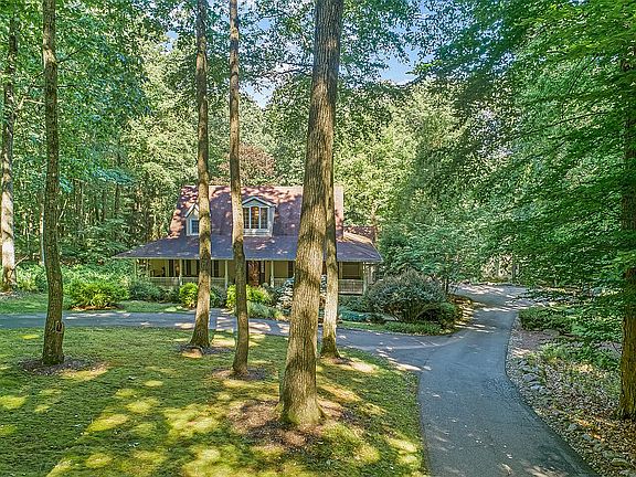 Unique Custom-Built Cape Cod Colonial and Guest Cottage on Eight Acres Nestled amid leafy woodlands on eight acres of privacy and serenity, a custom residence in Tewksbury is enhanced by an Adirondack-inspired two bedroom guest cottage with a ground level workshop. The main home offers four bedrooms and four full baths. Enjoy the natural beauty of this setting from a multi-tiered deck, covered rocking chair front porch and stone patio featuring a full kitchen and fireplace, or stroll to the multi-use Columbia Trail for hiking, jogging, fly-fishing or biking. A spacious two-car garage with a garden/equipment bay and finished second level is another prime amenity. Highlights of the main home’s gracious twelve-room interior include hardwood flooring throughout, high ceilings, window walls, skylights, recessed lighting, neutral paint colors, two woodstoves, a center island kitchen, elegant master suite and beautifully finished walkout lower level. Introducing the home is a soaring foyer set under cathedral ceilings and featuring a staircase, crown moldings, a fixed upper window and views into the great room. A door in the foyer reveals a charming den or bedroom with a walk-in closet, while a French door on the opposite side of the foyer opens to an office designed for two with walls of built-in cabinets. Straight ahead of the foyer, the dramatic great room is detailed with hardwood floors, a vast window wall, cathedral ceilings, a railed overlook from the upstairs hallway, a cozy woodstove, decorative columns and sliding French doors opening to the spacious tiered deck. Continuing the open flow is a gourmet kitchen featuring maple cabinetry, a center island with seating, granite tile counters, ceramic tile backsplash and floors, plus recessed and pendant lights. The kitchen’s windowed dining area has two skylights set into the volume ceiling, hardwood floors and sliding French doors to the deck for outdoor meals. Nearby is a fully-equipped laundry room offering a covered walkway to the garage . A refined first floor master suite begins in the skylit bedroom designed with a window wall, hardwood floors and recessed lighting. In the updated master bath, a newer glass door shower and two furniture-caliber sink vanities topped in granite flank a view-filled bay window framing forest views. Upstairs are two additional bedrooms and a full bath. Elegantly finished with ample space, the walkout daylight lower level presents a wood-paneled family room with sliding French doors to the patio, a gas fireplace set into a brick hearth and an entertainment-friendly kitchenette. This stylish level also includes a bedroom with artistic trompe d’oeil murals and a walk-in cedar closet, a full bath and a double door entrance to bonus room for crafts or exercise. Another notable advantage is the two-story guest cottage which is inspired by Adirondack Mountain lodges. Perfect for weekend visitors, this barn-type cottage was built post and beam style architecture. The main level offers hardwood floors, a bedroom, full bath, beamed ceiling great room, full kitchen and laundry room. A rustic wood staircase reveals an upstairs loft with a second bedroom, large walk-in closet and office. The ground level contains a utility and storage area with attached equipment shed; this level could also be used as an artist’s studio /work-shop. Both the main house and guest cottage are located near the stone patio and full outdoor kitchen which includes a Weber™ grill, refrigerator, sink and fireplace with a conversation area. The tiered deck offers several seating and dining options as well as views of blooming trees and specimen plantings. A high-end “water furnace” geothermal system is an energy efficient source for heating cooling the main house. Additional utilities include private septic, well water and generator hook-ups.