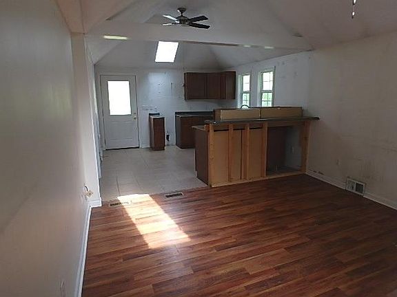 Ranch style home with an open floor plan and a front covered porch. Located on 1.2 acres of private/ wooded land. Over-sized two car detached garage. True one level living. Plenty of counter/cabinet space in the kitchen with tons of natural light and a skylight. Full, unfinished basement for extra storage space. Glass block windows in basement and laundry area.