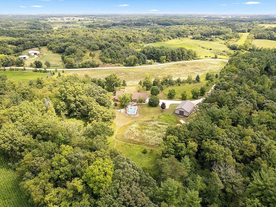 Wow! Unbelievable 14+ acres of the most majestic views you will ever find! This cstm home sits up overlooking beautiful prairies & woods! Meandering trails thru out! Awesome 36x54 outbuldng 4 shop & all the toys! Inground pool w/slide is amazing 4 summer fun along w/firepit area! Stunning 2-sty LR w/flr 2 clng FP! Sep den/sit area w/btfl views! Very functional eat-in ktchn w/plenty of oak cabinetry, brkfst bar & sldr 2 cstm deck! Convenient 1st flr lndry! 2nd flr loft is perfect getaway! 1st flr mstr suite w/WIC & prvt bth! Gracious sz secondary bdrms! Huge fin wlkout bsmnt w/rec rm walks out 2 lwr patio! 2 lwr lvl bdrms, exercise rm & plenty of strg! Furnace 5 years! Roof under 10 years! New water heater! Pool in great shape! Surrounded by trees & prairie!