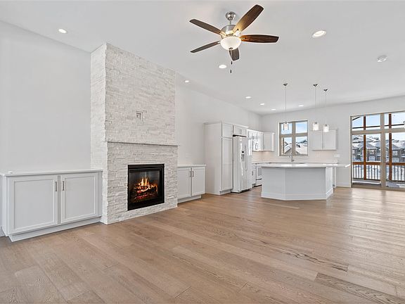 This beautiful condo is in pristine, like-new condition and boasts contemporary hardwood flooring throughout its main floor areas. The spacious living room is a focal point, featuring a stunning stone gas fireplace flanked by clean and crisp built-in cabinets on each side. The living room provides a comfortable and inviting space for relaxation. The kitchen is designed with modern elegance, showcasing white solid surface countertops, cabinets, and matching white appliances. A counter-height breakfast bar adds a touch of convenience, and there is also a dining area that leads to a screened-in porch and grilling deck. From the porch, residents can enjoy serene views of the community pond, creating a perfect spot for outdoor enjoyment. The primary bedroom is a true retreat, complete with automatic Levelor blinds for added convenience. The en-suite bathroom features dual sinks, a custom-tiled walk-in shower, and a large walk-in closet, providing ample storage space. Also on the main floor, there is a convenient ½ bath for guests, and a combination drop zone and main floor laundry area located just off the spacious 2-stall garage, adding to the overall functionality of the space. The walk-out lower level of the condo offers even more living space, including a giant recreation/family room that can accommodate various activities. Two large bedrooms with spacious closets provide comfortable living quarters, and there is a full bathroom for added convenience. Additionally, a utility/storage room caters to practical needs, completing the well-designed layout of this condominium. Walk out to the back patio and enjoy the views of the pond and trail. Upgrades include many light fixtures, automated window treatments, numerous ceiling fans and more. Beautiful and move-in ready, don’t miss out on this great condo!  NOTE: HOA dues include street maintenance, but each owner is responsible for snow removal on driveway and walkway to home.