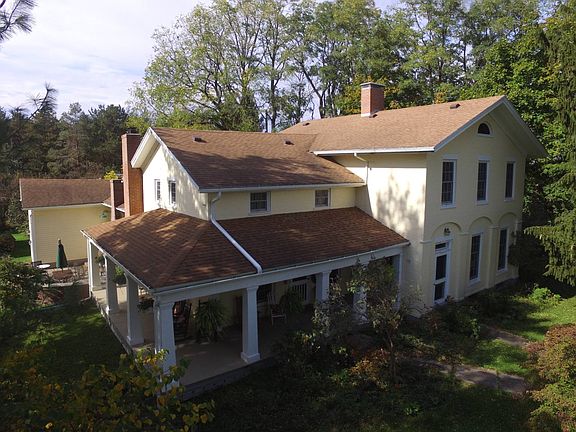 Grand five bedroom, two bath home on nearly 20 acres! Includes stable, pole barn with kennel, one car attached plus three car detached, paddocks, and views of the Bristol Hills!. Home features an updated kitchen but original stenciling in many of the rooms. Well maintained with care. OPEN HOUSE: Tuesday, September 20th at 3pm. Offers due by Friday, September 23rd at 5pm.