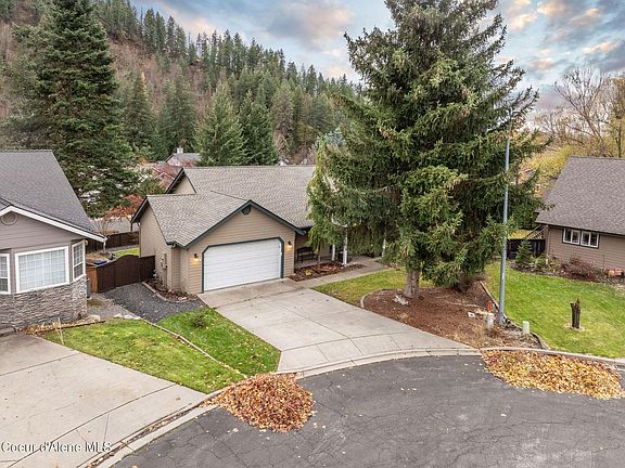 Best Hill Meadows Beauty! Turn-key Daylight Rancher with incredible Canfield Mt. Views on quiet cul-de-sac in sought after CDA neighborhood! This nicely updated ''Smart Home'' has new roof, new HVAC, recently updated lower level, hardwood flooring, granite counters and so much more. Incredible landscaping with majestic water feature and fantastic outdoor living on large deck and huge lower level patio. Spacious covered front porch, 3,322 finished SF, main level primary suite, 4 bedrooms, 3 baths and a 2 car finished garage. Spacious vaulted great room with open island kitchen, with GFP and access to deck. Huge lower-level family room with access to lower-level patio and beautifully landscaped back yard. Neighborhood RV / Boat storage!