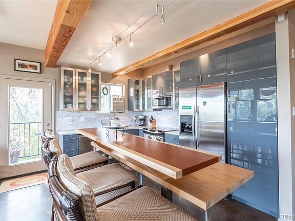NOW PRICED TO SELL - SELLER HAS AGREED TO PRE-PAY 6 MONTHS OF HOA DUES!! This is the one you've been waiting for - stunning single floor loft style living in Edgewater!! This rare end unit condo lives large as it offers 3 large bedrooms, 2 bathrooms, an open concept kitchen and dining space, a huge living room as well as a large bonus room that could be used as a study, home office, library or secondary living space, all without the maintenance of a single family home. Talk about location, you'll find yourself perfectly situated a short distance from Sloan's Lake, Edgewater Town Center and just a quick jaunt to the Highlands. You can be at the neighborhood hotspot Edgewater Public Market, Target, Sprouts and many delicious dining options including Rupert's, Providence, Rise and Shine in minutes! This unique residence was totally rebuilt 6 years ago and is certain to satisfy the most discerning eye with its designer modern finishes, gorgeous restored wooden ceiling beams and custom finished concrete floors. You'll enjoy trying that new recipe in the kitchen fit for the gourmet chef that features sleek glass and metal detailed cabinetry, gorgeous marble tile backsplash, quartz countertops and stainless appliances. Dine al fresco, enjoy your morning coffee or an evening wine while relaxing on your spacious South facing private balcony. You get the best of both worlds with the lovely morning sun welcoming you to start your day and the best way to wind down with those breathtaking mountain sunsets! Don't forget to check out the private pool and sundeck! You'll love that this property comes with it's very own massive attached 2+ car garage with cabinetry, countertops and tons of room for storage, your own private gym or workshop. What a find, this is the only unit with a garage. There are 2 private exterior entrances and 2 outdoor guest parking spaces included as well!