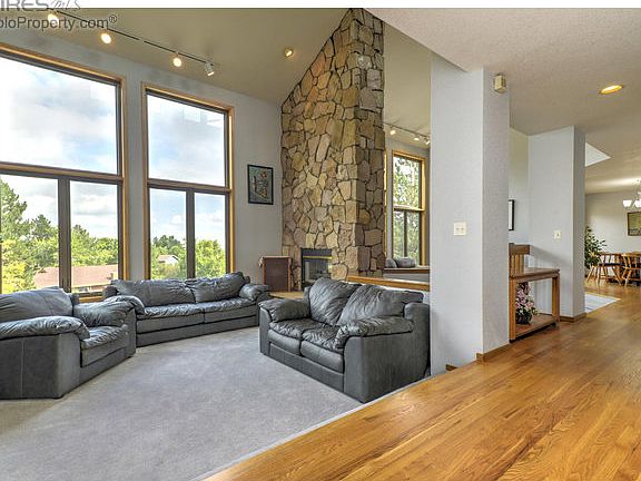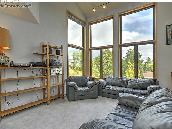 Custom built Contemporary offers redwood sided 2X6 constr, tile entry, Anderson windows, soaring vaulted ceilings, open floor plan, passive solar design w majestic mountain and city views. Kitchen has oak cabinets, quartz counters, oak flrs, double convection ovens, gas range, side by side frig, microwave, preparation island, pantry, breakfast nook and deck. Lrg master suite has 6 piece bath w jetted tub & sep shower, lrg walk in closet. Lrg 3 car w car hoist, shop & storage