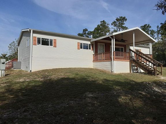 Mobile home in great shape on a hill overlooking farms, less than one-tenth of a mile off a paved road. Home has a fireplace and good-sized rooms. Quality throughout including a kitchen island and huge laundry room. Both bathrooms have dual sinks! Master bath has separate soaker tub and shower. Carpet installed less than 5 years ago and shows no wear. Outside the carport holds your cars and all your toys in the attached 10' x 20' shed. A wheelchair ramp is hidden in the back making it easy to get in, but hard to see. The front yard slopes down to a well-maintained county road and comes with all the peace and quiet a body could need. Easy commute to Ocala. Come check this one out.