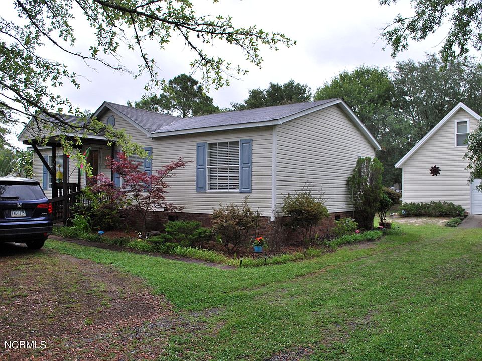 This picture perfect home has been lovingly cared for and ready for it's new owner. Situated on a large lot on a dead end street just minutes to shopping and the beach. The kitchen has plenty of cabinets and breakfast bar. There is also a large dining area. There is a large sun room in the back with plenty of space for entertaining. Relax and enjoy the sun rise in a natural setting. Plenty of shade trees to enjoy. There is a large detached garage with a loft and plenty of storage.