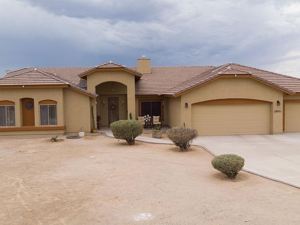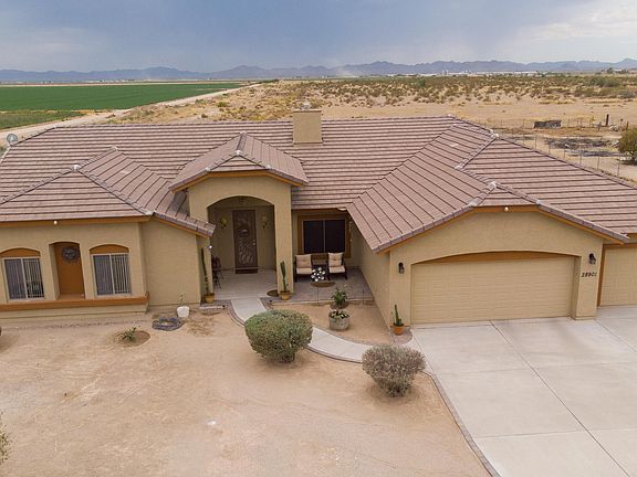 Beautiful custom build in the City of Buckeye. Meticulous care and attention to detail went into every aspect of this home. 4 large bedrooms and 2.5 baths make this home the perfect place for family roots. Sitting on 1.25+ acre (flat/usable) with no HOA, this has plenty space for storage, toys, etc. The open eat-in kitchen offers granite counters, tile flooring, island, dual wall ovens, refrigerator, veggie sink, pantry and trash compactor. The family room has a 2-sided fireplace, wired for surround sound and custom built-ins. Master bedroom contains rear yard access along with a spa like en-suite bath that has a jetted tub, separate shower and walk-in closet. The oversized, deep 3-car garage has abundant storage with access to the rear yard. Come see, fall in love and make an offer today