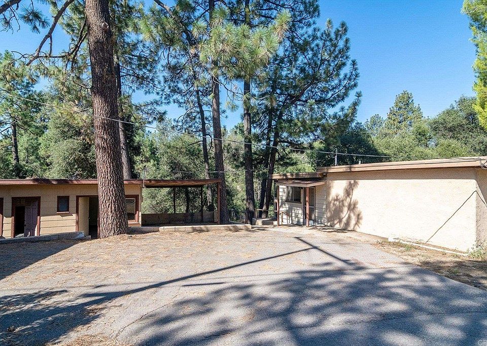 Tucked in and amongst beautiful pine and oak trees this 2 story modern style house with approximately 2,000 sq. feet of living space, needs some attention and is a perfect fixer for those looking for a project to remodel. Downstairs offers a spacious master bedroom, full bath, and a masonry fireplace. The entry level has 2 bedroom, 1 bath, living room with wood burning fireplace, dining room and family room. Good floor plan throughout. Adjacent is another building knows as, per permits, the guest house and presently offers a laundry room with guest room and plumbing for a small bathroom. Attached is a permitted storage area, and a detached metal shed that stays. The lot is 12,249. Two parking spaces. Create your own retreat and enjoy the 4 seasons and all the pleasantries of living in Pine Valley. 2022-07-12