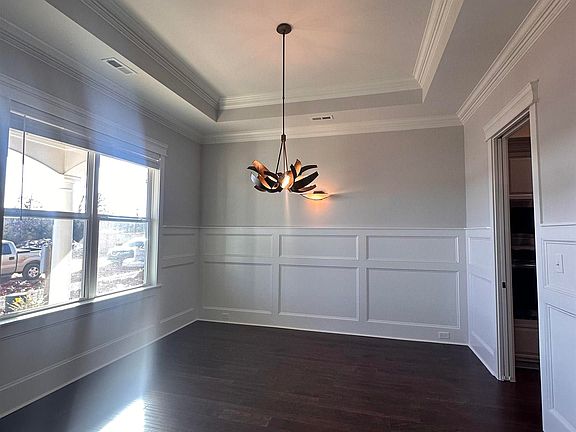 - Features: 10’ + Ceiling, Ceiling Fan(s), Crown Molding, Tray Ceiling(s), Wood Floor