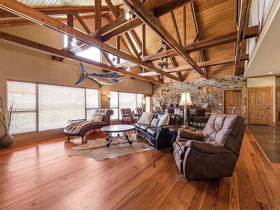 Your opportunity to own your own personal or corporate retreat awaits you in this beautiful 75 acre property with multiple uses! Custom home includes 3 BR, 3 BA, Office & is beautifully detailed with hardwood floors, stone accents, exposed beams & multiple porches. Master BR includes private screened porch with access to outdoor hot tub, expansive Master BA with soaking tub, substantial shower & WI closet. Office contains built ins & access to another private screened porch. The Kitchen includes Granite counters, SS appliances & gas cooktop is well-suited for preparing a feast after a full day of exploring & recreation. 2 Add'l BR with en suite BA are perfect for guests. Garden area on property can be planted to provide farm to table feast. Equestrian fields contain Coastal Bermuda.