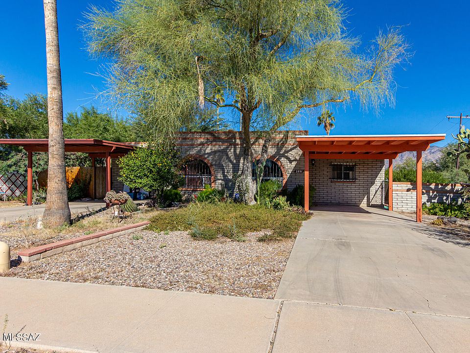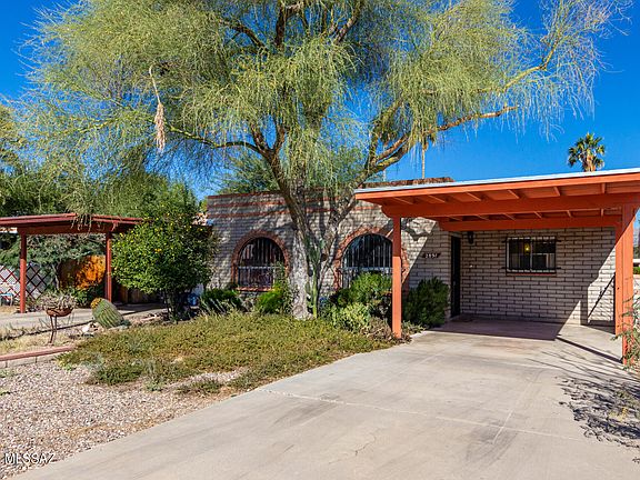 Be the proud owner of this lovely two bedroom home in Tucson! Great investment opportunity! Inside discover a welcoming living area, built-in shelves, and carpeting throughout. The eat-in kitchen wood cabinetry, white appliances and skylight. Primary bedroom features a private bathroom & an ample closet space. Enjoy mountain views and covered patio with mature saguaro and desert landscape.