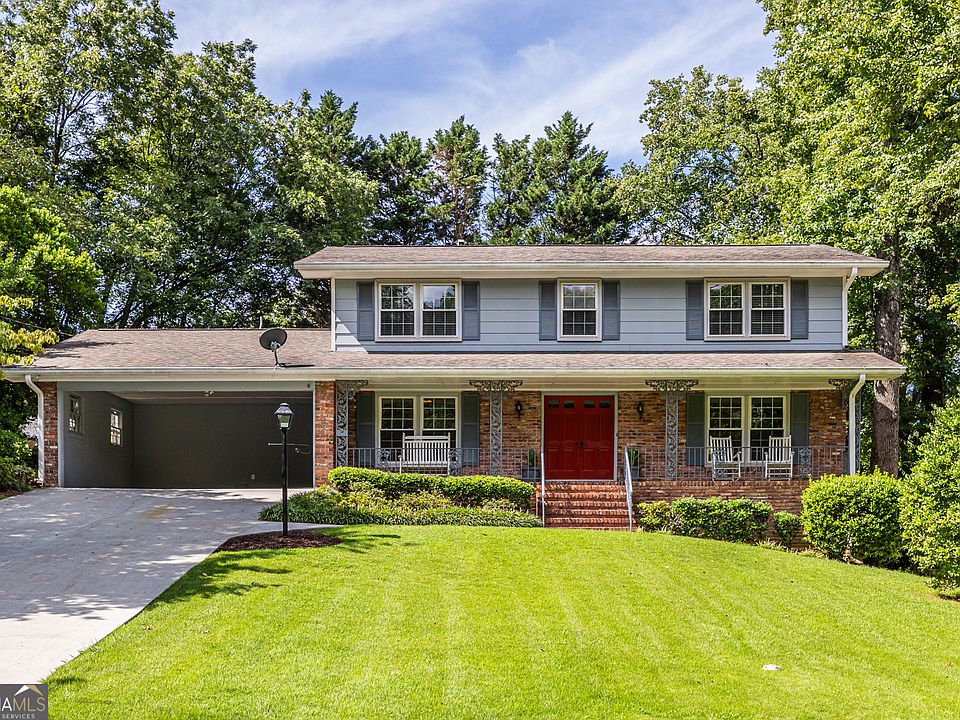 Wonderful rocking chair front porch, two-story home on a basement in popular Country Squire neighborhood. 4 bedrooms, 3 baths, including a bedroom and a full bath on the main. Refinished oak hardwood floors throughout main and upper levels. Freshly painted interior. Updated kitchen with granite counters, beautiful tile backsplash, and stainless appliances. Newer HVAC and water heater. And spaceCaso much space! The primary bedroom is quite large and includes a surprisingly large ensuite that is begging to be transformed into a modern spa retreat. It is quite livable in the meantime. All three secondary bedrooms are spacious. Updated secondary bathrooms, new lighting/ceiling fans throughout the house. The partially finished basement has new LVP floors, and there is a great sunroom off the family room. The unfinished part of the basement offers So. Much. Storage.!!! Fantastic fenced in yard which includes a shed and mature plants. Fun neighborhood with a social club, and civic club and a great pool (membership required). Close to Emory, downtown Decatur, shopping, restaurants, and the new Lulah Falls development. Welcome to 2891 Hillbrook Way.