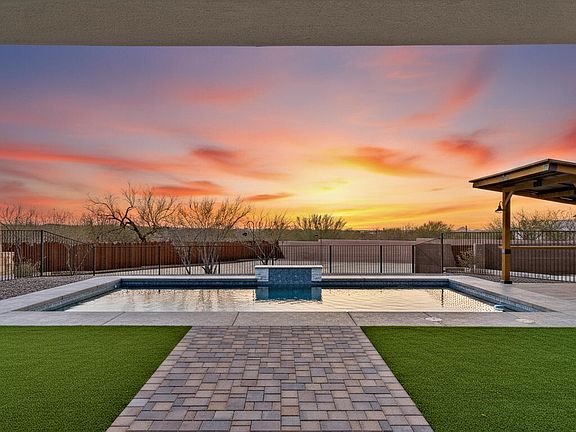 STYLE MEETS FREEDOM! The ultimate luxury lifestyle set on a manicured acre of land. Expansive great room sports a stylish fireplace w/variable lighting. No HOA to hinder your enjoyment. Extensive walls & fencing create a personal playground w/designated yards. Ideal for pets, projects, & toy parking. HAVE ALL THE FUN STUFF AT HOME! Entertain w/ ease under a massive cov patio overlooking the waterfall pool w/view of trees, mtns & desert sunsets! 36-in tile mimics the look & feel of polished Carrara stone. The chef's dream awaits: Maple cabinets on 2 sides of the island, Calacatta Quartz, Induction Cooktop, Convection Oven & Micro. Prepare to be Impressed: Owner's suite offers plenty of wall space, spa-quality rain shower, wall-mounted vanities, corner soaking tub & enormous walk-in closet!